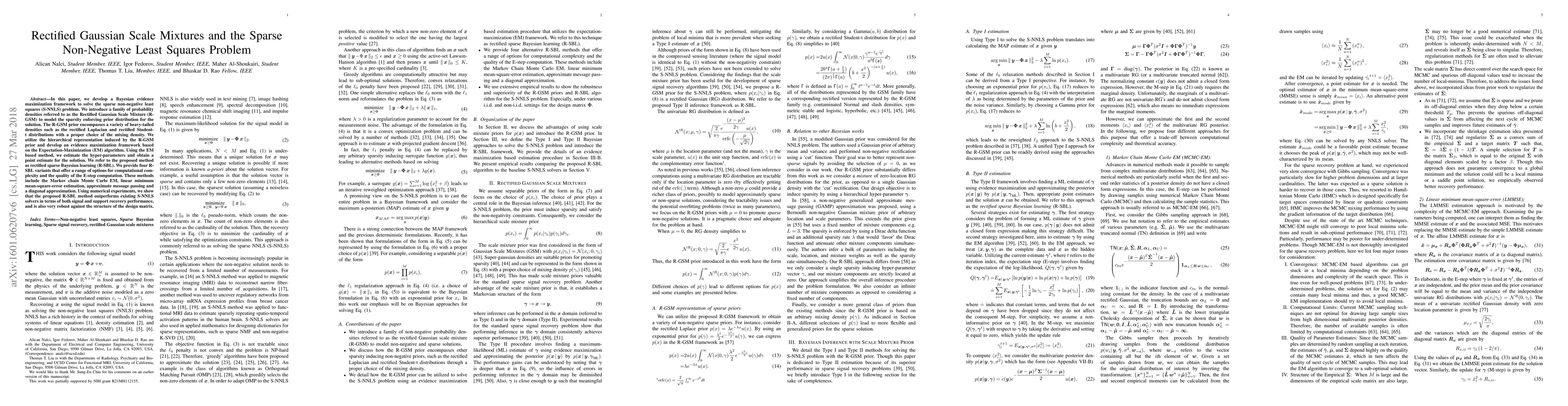 This paper introduces a Bayesian framework for solving the sparse non-negative least squares problem using Rectified Gaussian Scale Mixtures as a prior distribution. It demonstrates improved performance over existing methods in terms of signal and support recovery.