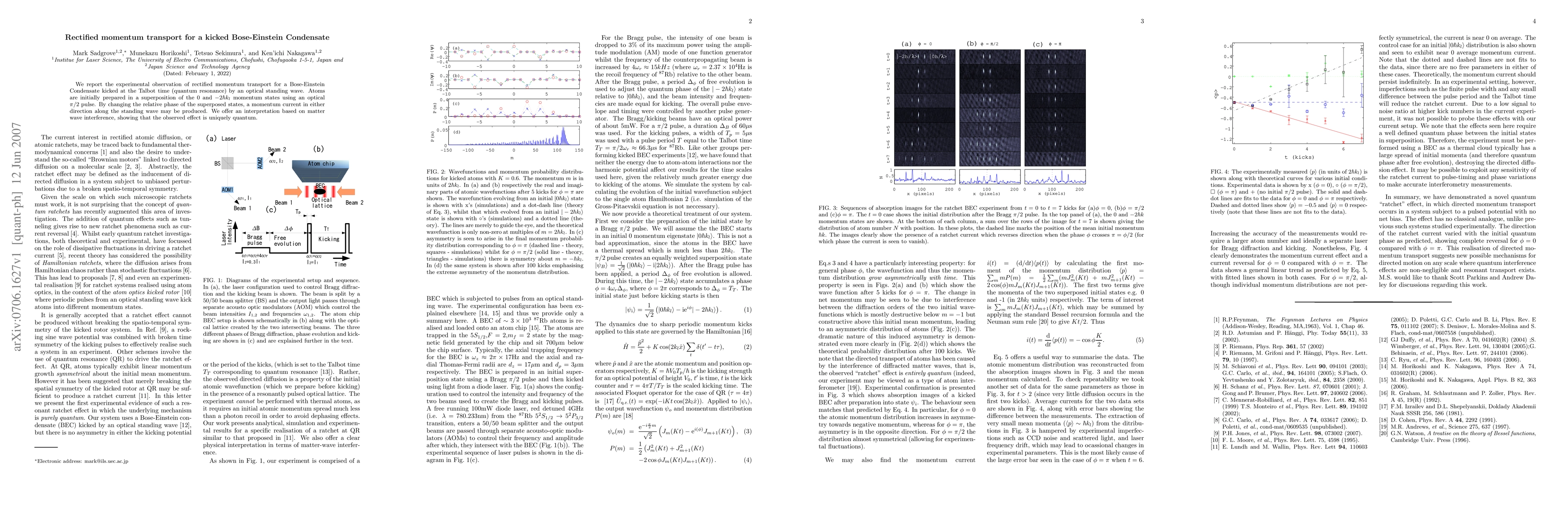 This research experimentally observes rectified momentum transport in a Bose-Einstein Condensate at the Talbot time, driven by an optical standing wave. The study demonstrates directional momentum currents by manipulating the relative phase of superposed momentum states, attributing the effect to quantum matter wave interference.