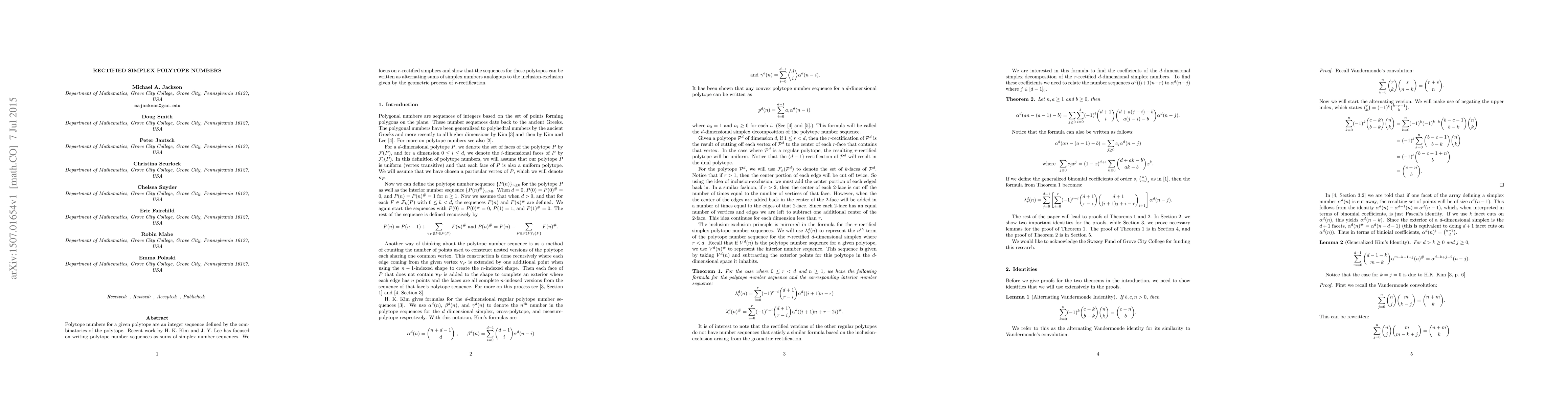 This paper investigates polytope numbers derived from $r$-rectified simplices, demonstrating that these sequences can be expressed as alternating sums of simplex number sequences, mirroring the geometric inclusion-exclusion principle inherent in the $r$-rectification process.