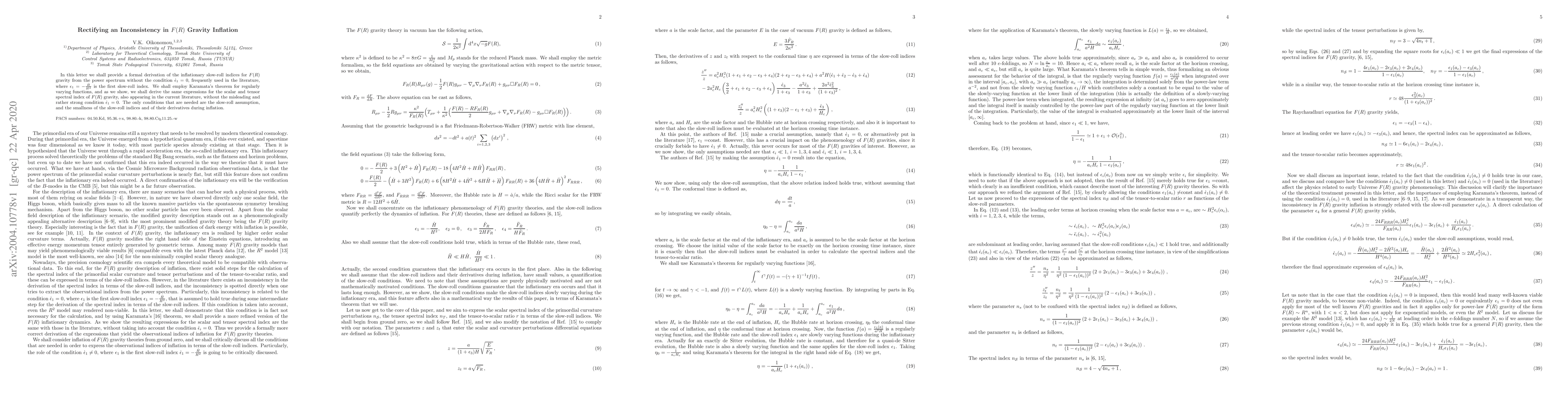 In this letter we shall provide a formal derivation of the inflationary slow-roll indices for $F(R)$ gravity from the power spectrum without the condition $\dot{\epsilon}_1=0$, frequently used in the literature, where $\epsilon_1=-\frac{\dot{H}}{H^2}$ is the first slow-roll index. We shall employ Karamata's theorem for regularly varying functions, and as we show, we shall derive the same expressions for the scalar and tensor spectral index of $F(R)$ gravity, also appearing in the current literature, without the misleading and rather strong condition $\dot{\epsilon}_1=0$. The only conditions that are needed are the slow-roll assumption, and the smallness of the slow-roll indices and of their derivatives during inflation.