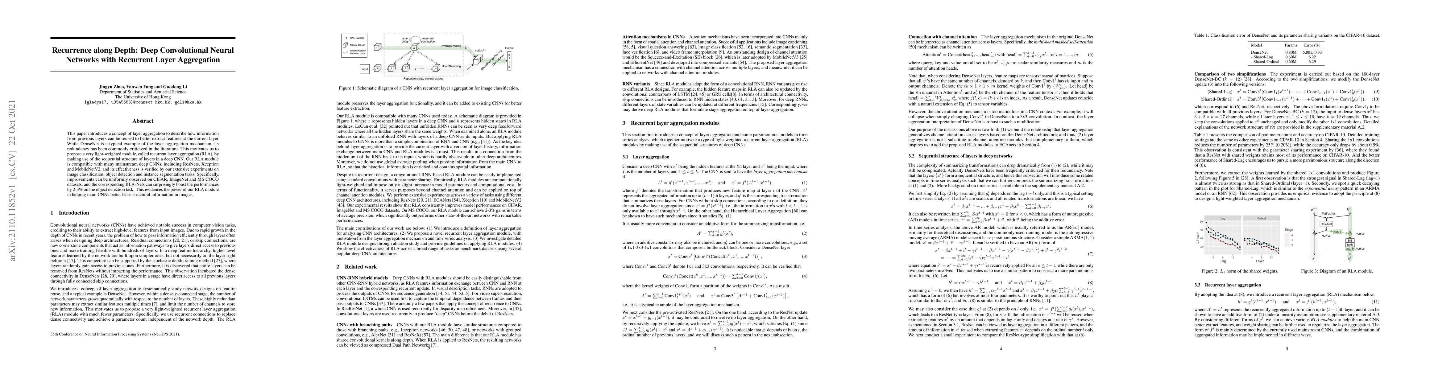 This paper proposes a lightweight recurrent layer aggregation (RLA) module to enhance feature extraction in deep CNNs by reusing information from previous layers. The RLA module improves performance across various tasks and datasets, demonstrating a 2-3% boost in object detection.