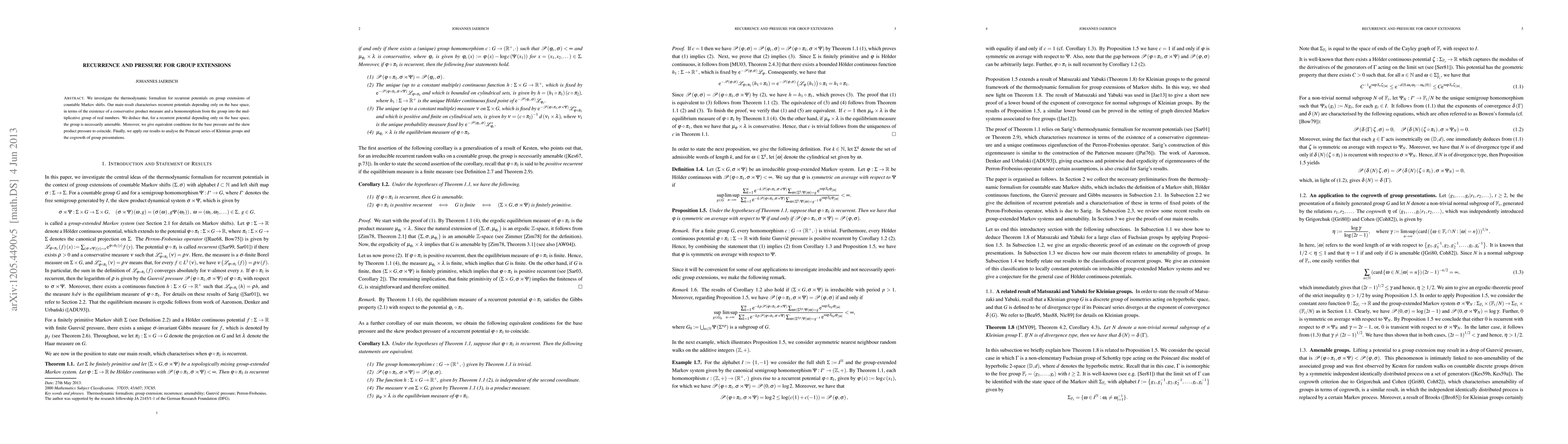 We investigate the thermodynamic formalism for recurrent potentials on group extensions of countable Markov shifts. Our main result characterises recurrent potentials depending only on the base space, in terms of the existence of a conservative product measure and a homomorphism from the group into the multiplicative group of real numbers. We deduce that, for a recurrent potential depending only on the base space, the group is necessarily amenable. Moreover, we give equivalent conditions for the base pressure and the skew product pressure to coincide. Finally, we apply our results to analyse the Poincar\'e series of Kleinian groups and the cogrowth of group presentations.