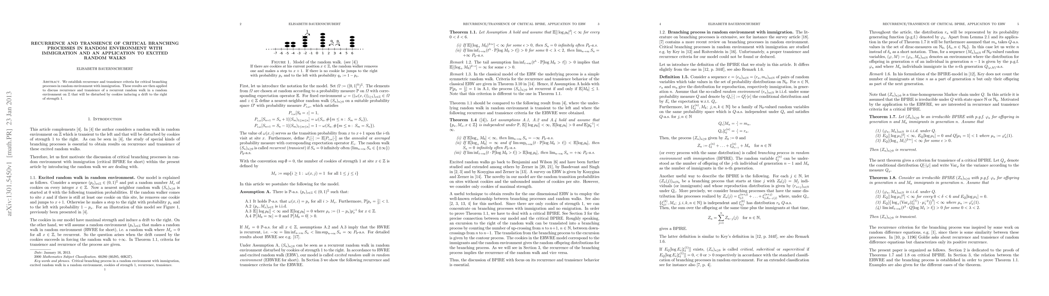 Summary: This paper establishes criteria for recurrence and transience in critical branching processes with immigration in random environments, and applies these criteria to analyze the behavior of excited random walks on Z with a drift induced by cookies.
