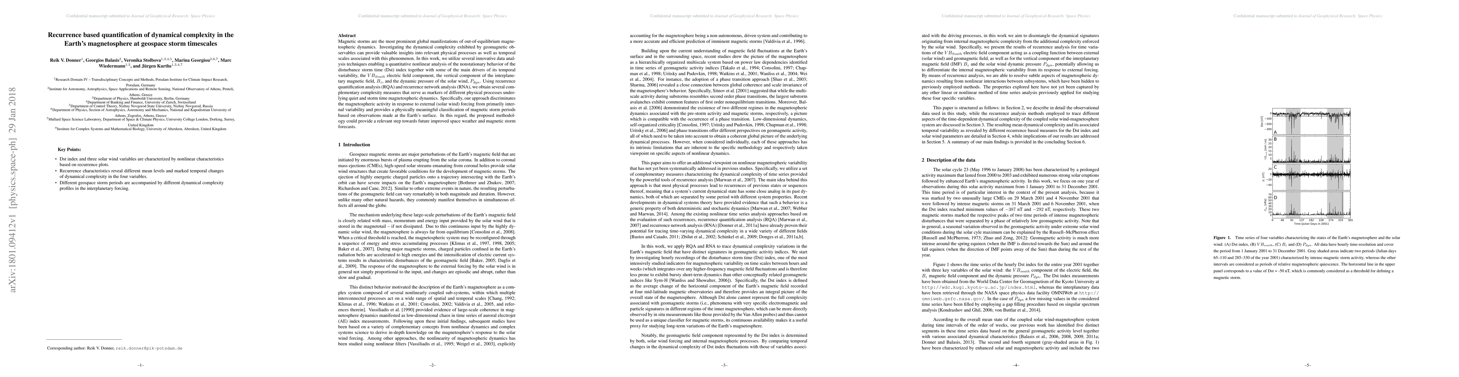 A new study uses data analysis techniques to quantify complexity in the Earth's magnetosphere during magnetic storms, providing insights into physical processes and storm forecasts.