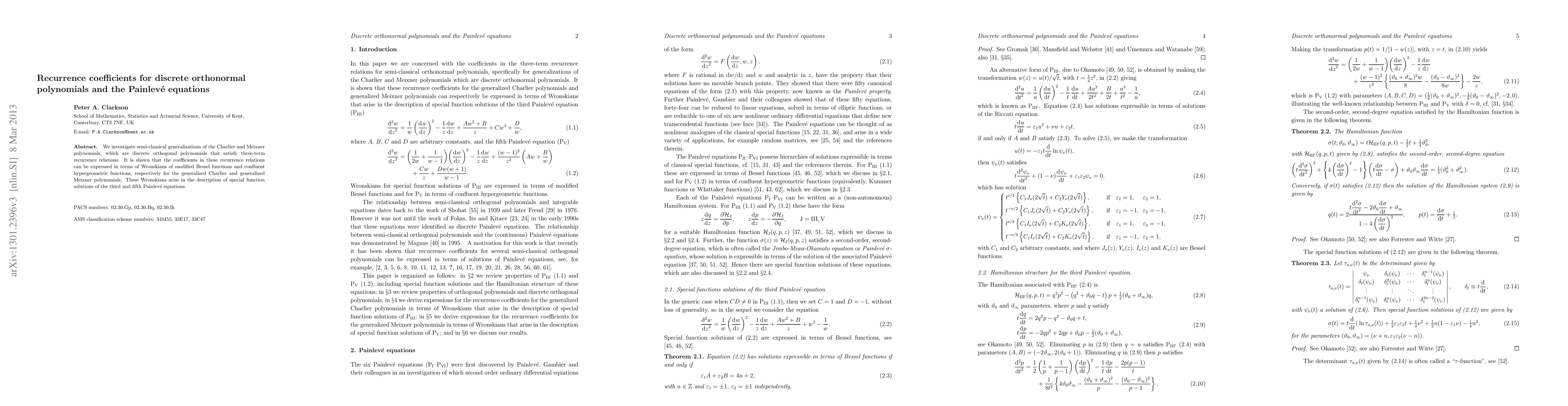The paper explores semi-classical generalizations of discrete orthogonal polynomials, showing that recurrence coefficients can be linked to Wronskians of modified Bessel and hypergeometric functions, which are also related to solutions of Painlevé equations.