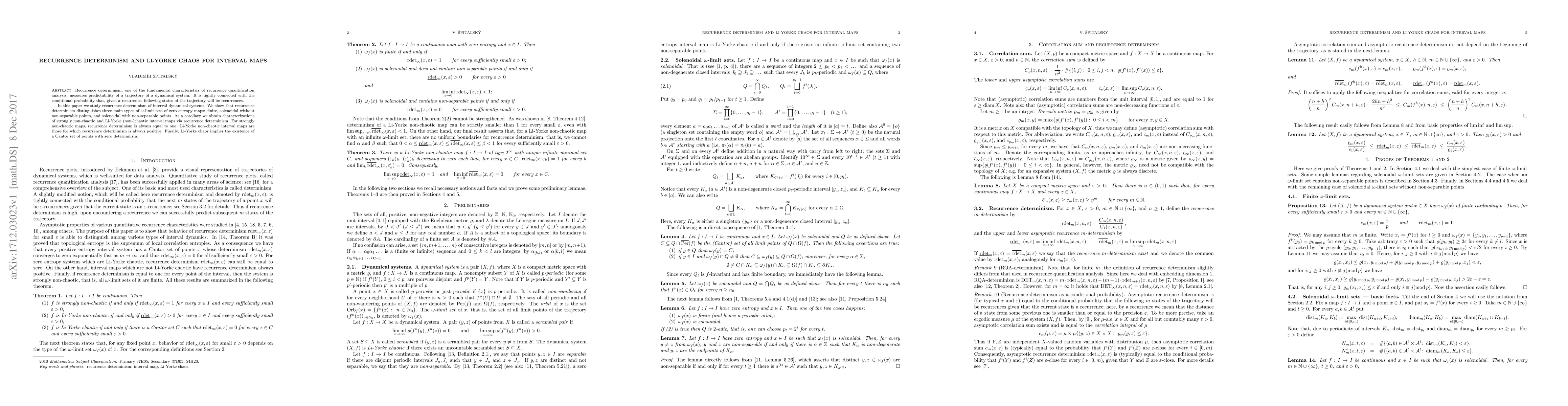 This paper investigates recurrence determinism in interval dynamical systems, showing it distinguishes between different types of $\omega$-limit sets. It characterizes strongly non-chaotic and Li-Yorke chaotic interval maps through recurrence determinism, revealing zero determinism in the presence of Li-Yorke chaos.