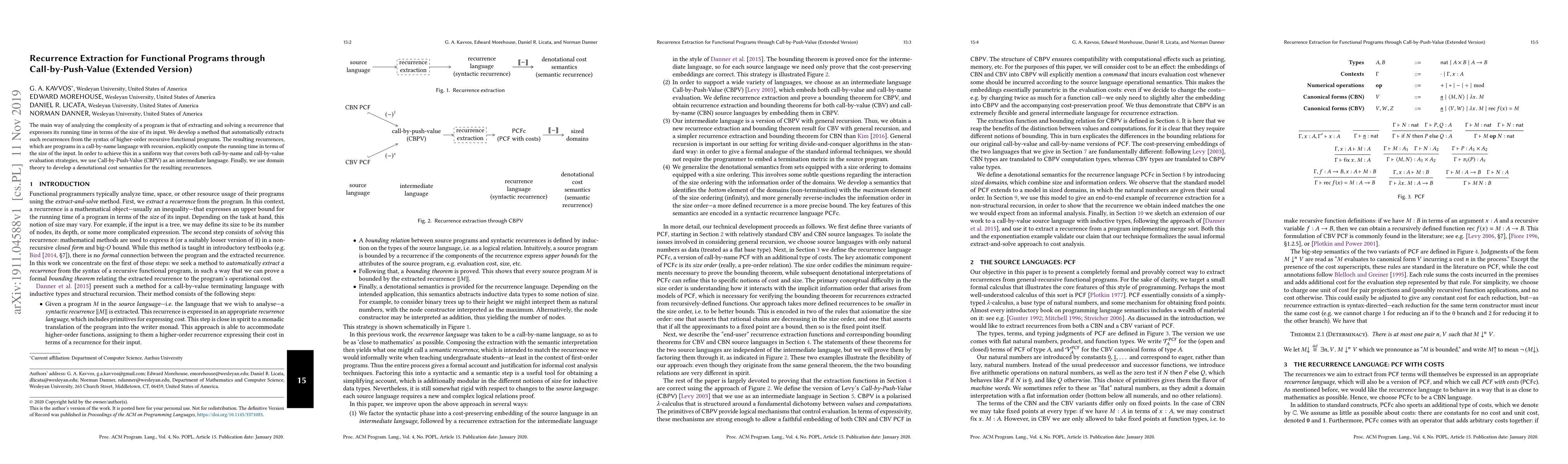 This paper presents a method for automatically extracting recurrences from higher-order recursive functional programs to analyze running time, using Call-by-Push-Value (CBPV) as an intermediate language, and employs domain theory to develop a denotational cost semantics for the extracted recurrences.