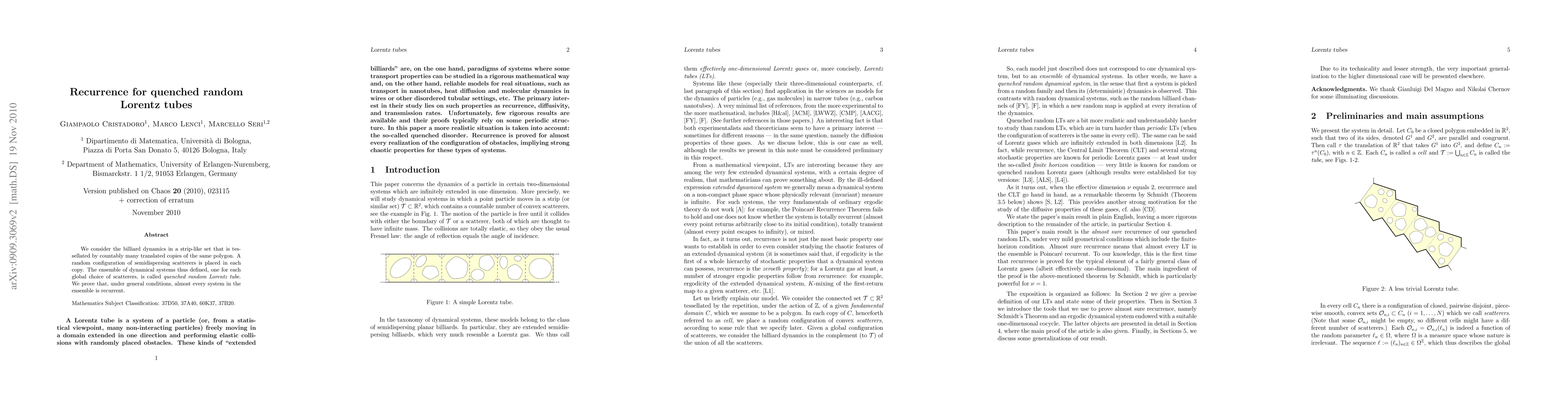 A study proves that almost every system in a 'quenched random Lorentz tube' is recurrent under general conditions, with the ensemble representing billiard dynamics in a strip-like set with semidispersing scatterers.