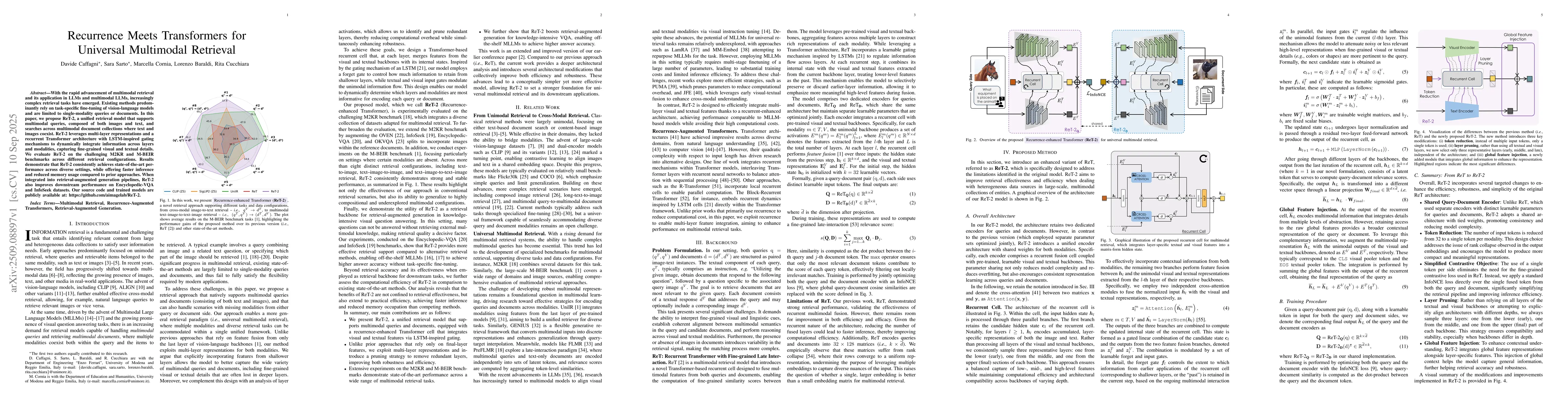 With the rapid advancement of multimodal retrieval and its application in LLMs and multimodal LLMs, increasingly complex retrieval tasks have emerged. Existing methods predominantly rely on task-specific fine-tuning of vision-language models and are limited to single-modality queries or documents. In this paper, we propose ReT-2, a unified retrieval model that supports multimodal queries, composed of both images and text, and searches across multimodal document collections where text and images coexist. ReT-2 leverages multi-layer representations and a recurrent Transformer architecture with LSTM-inspired gating mechanisms to dynamically integrate information across layers and modalities, capturing fine-grained visual and textual details. We evaluate ReT-2 on the challenging M2KR and M-BEIR benchmarks across different retrieval configurations. Results demonstrate that ReT-2 consistently achieves state-of-the-art performance across diverse settings, while offering faster inference and reduced memory usage compared to prior approaches. When integrated into retrieval-augmented generation pipelines, ReT-2 also improves downstream performance on Encyclopedic-VQA and InfoSeek datasets. Our source code and trained models are publicly available at: https://github.com/aimagelab/ReT-2