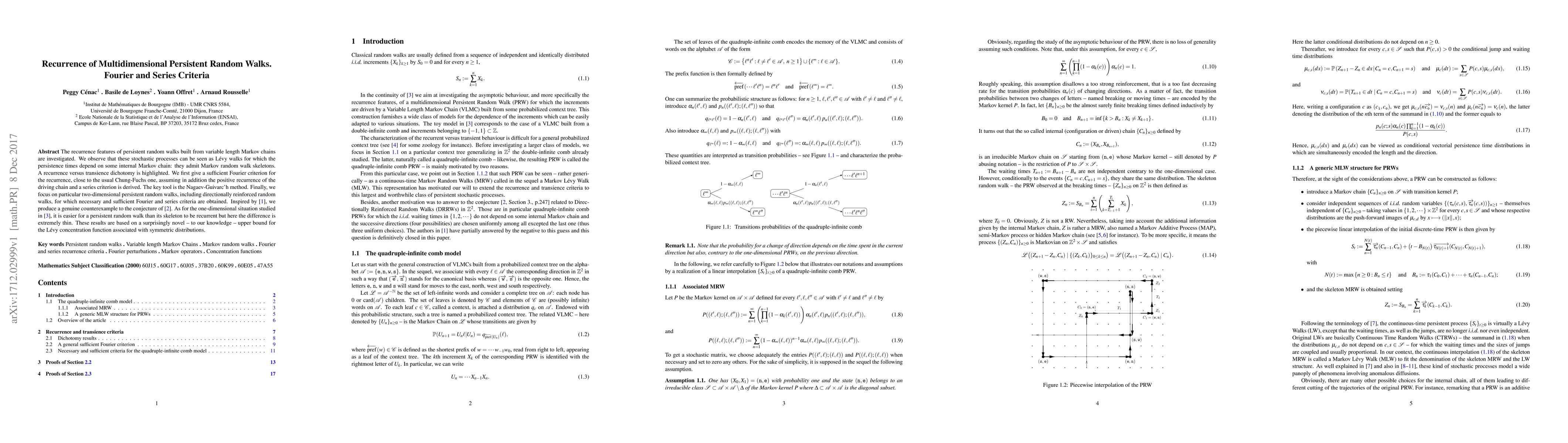 This paper explores the recurrence properties of multidimensional persistent random walks derived from Markov chains, establishing a dichotomy between recurrence and transience. It introduces a Fourier criterion for recurrence and a series criterion, employing the Nagaev-Guivarc'h method, and provides counterexamples to previous conjectures, highlighting the nuanced differences between persistent random walks and their Markov skeletons.