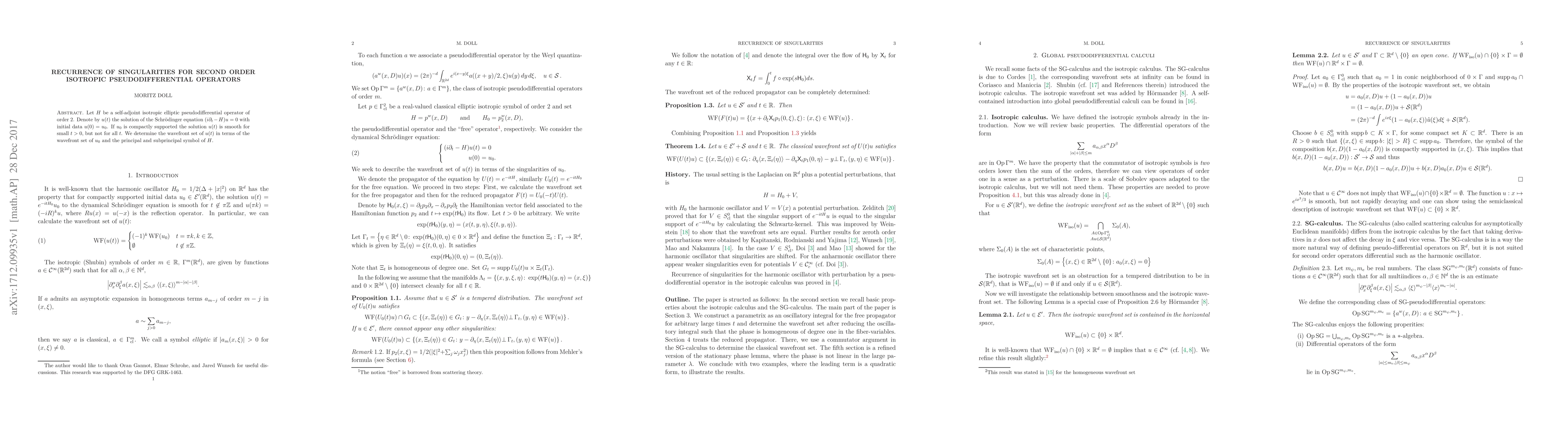 Let $H$ be a self-adjoint isotropic elliptic pseudodifferential operator of order $2$. Denote by $u(t)$ the solution of the Schr\"odinger equation $(i\partial_t - H)u = 0$ with initial data $u(0) = u_0$. If $u_0$ is compactly supported the solution $u(t)$ is smooth for small $t > 0$, but not for all $t$. We determine the wavefront set of $u(t)$ in terms of the wavefront set of $u_0$ and the principal and subprincipal symbol of $H$.