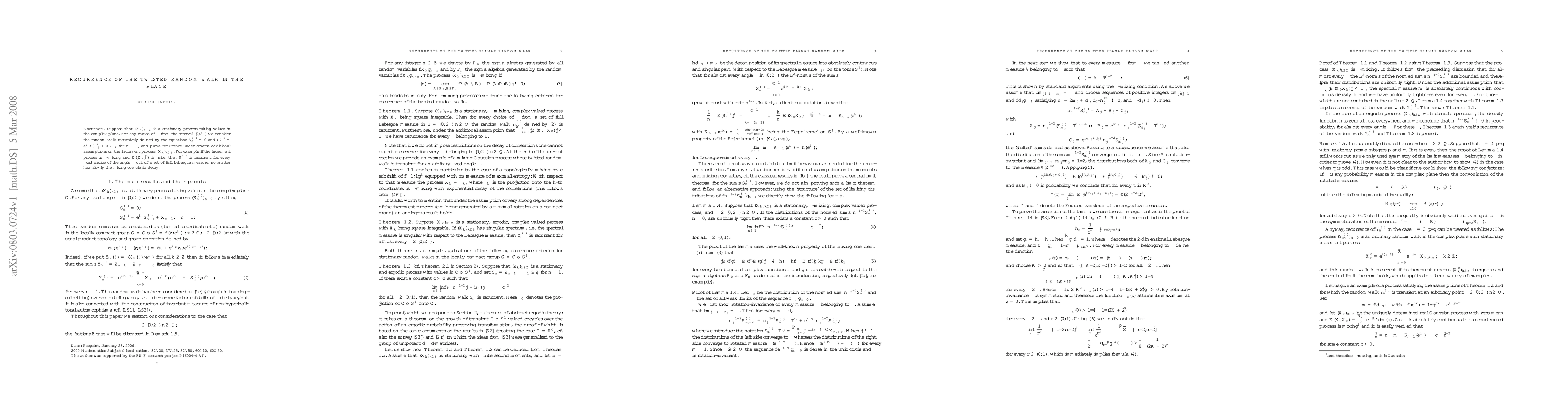 The twisted planar random walk is recurrent under various assumptions on the increment process, including alpha-mixing with finite second moment, regardless of the angle chosen.