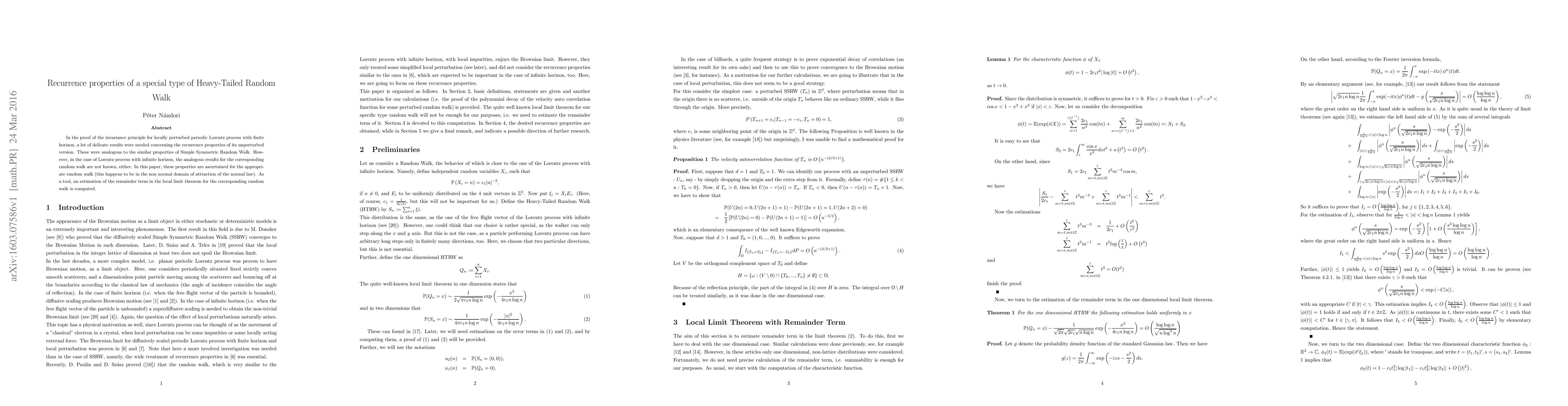 Researchers investigate recurrence properties of a Heavy-Tailed Random Walk with infinite horizon, a complex process that falls outside known results, and establish key findings using local limit theorem tools.