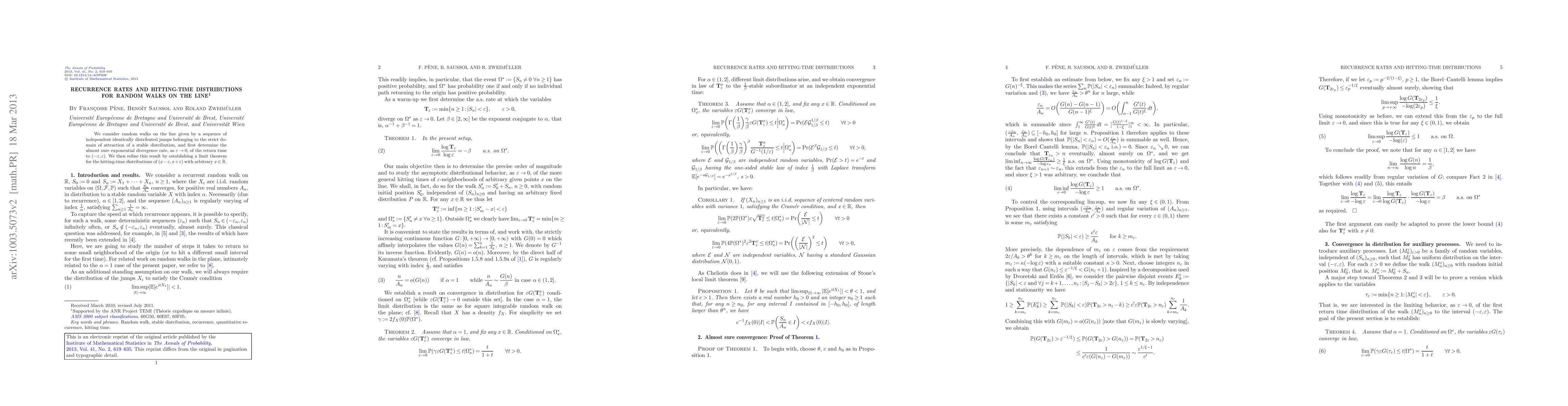 Summary: This paper investigates random walks on the line with jumps in the domain of attraction of a stable distribution. It determines the exponential divergence rate for return times to intervals and establishes a limit theorem for the distributions of hitting times to arbitrary intervals.