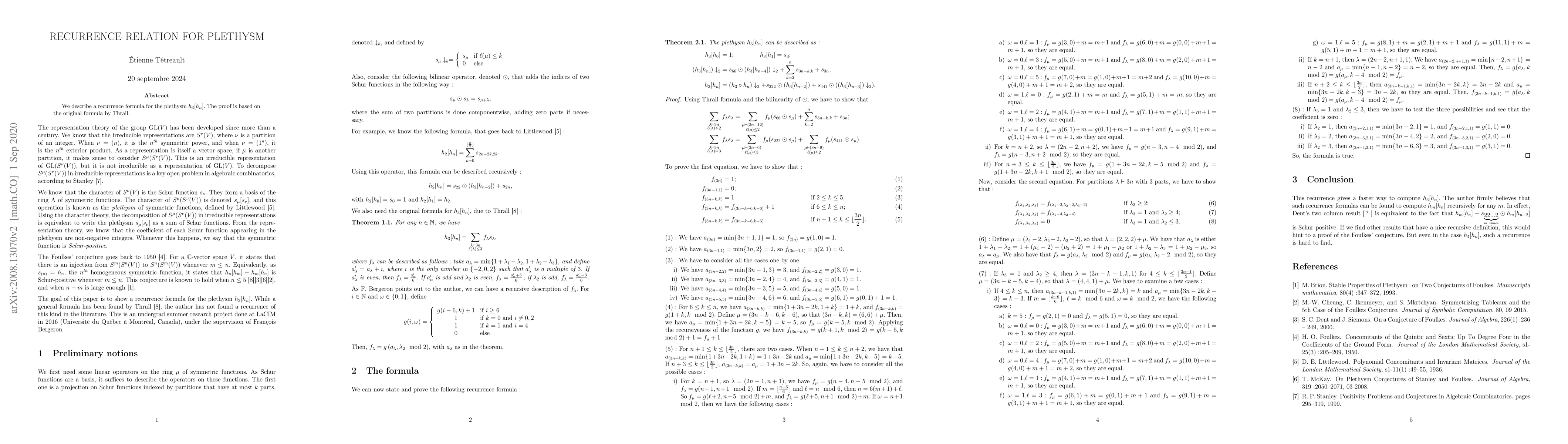 We describe a recurrence formula for the plethysm $h_3[h_n]$. The proof is based on the original formula by Thrall.