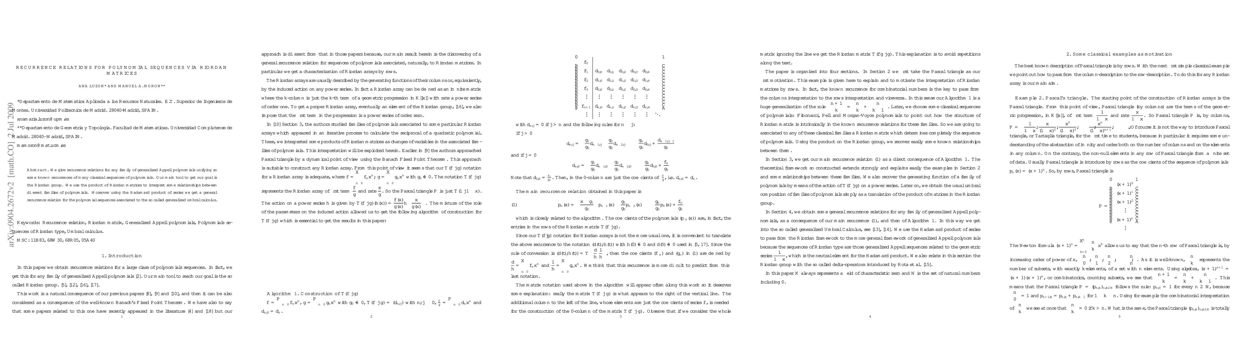 The paper introduces a novel application of Riordan matrices to derive recurrence relations for generalized Appell polynomial sequences, providing a unified framework for understanding and working with classical polynomial sequences.