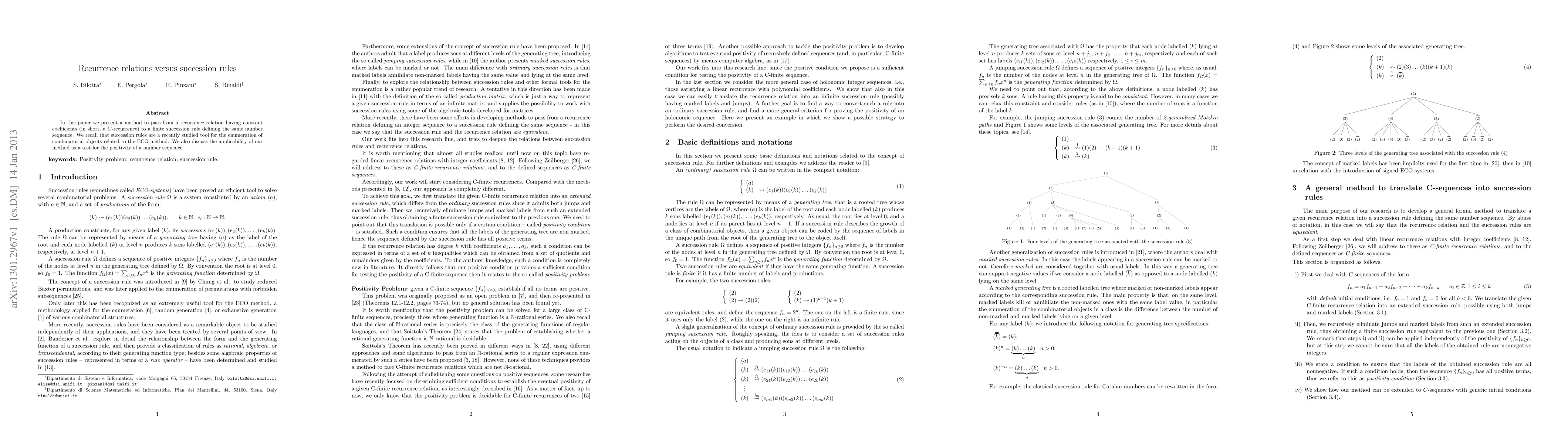 Researchers develop a method to convert constant coefficient recurrence relations into finite succession rules, providing a new tool for enumerating combinatorial objects.