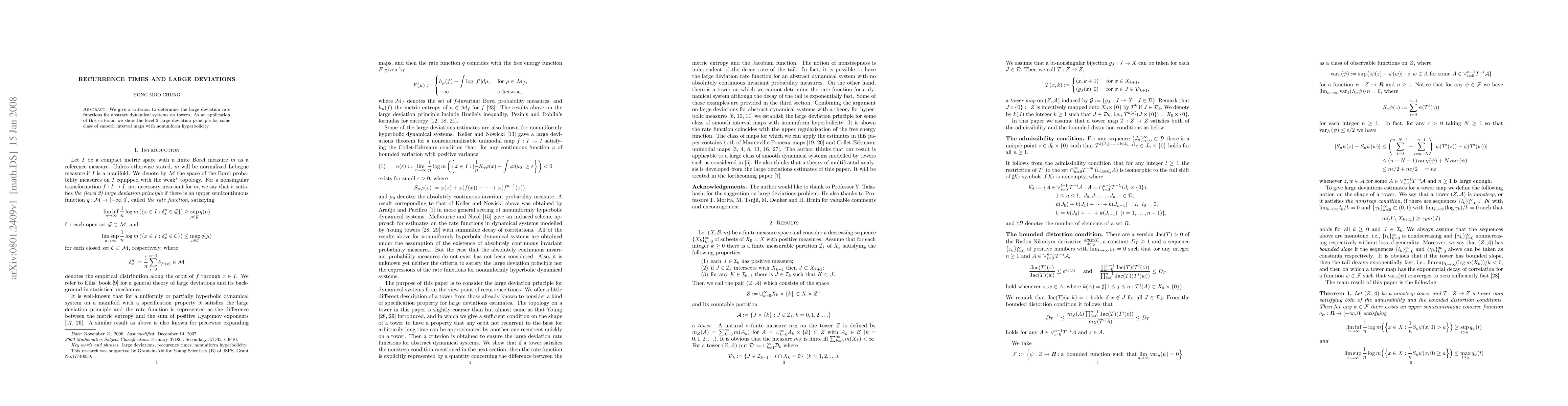 We give a criterion to determine the large deviation rate functions for abstract dynamical systems on towers. As an application of this criterion we show the level 2 large deviation principle for some class of smooth interval maps with nonuniform hyperbolicity.