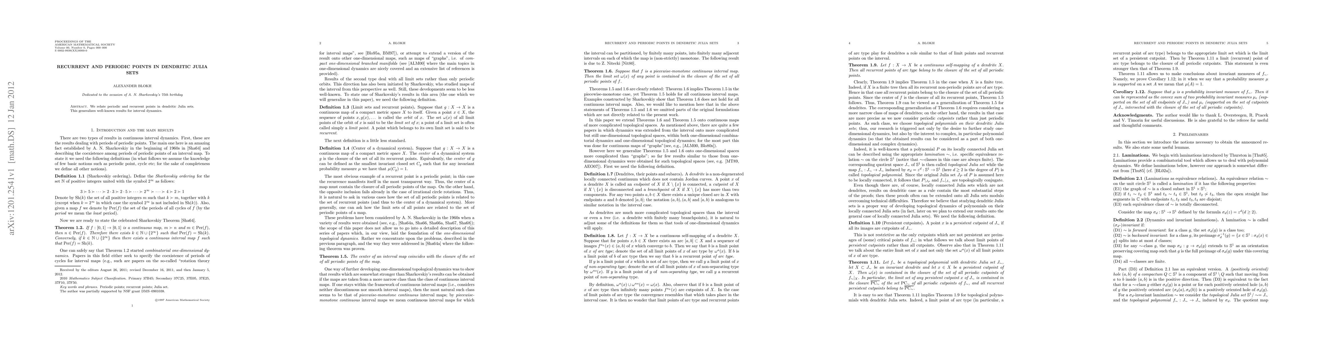 Summary: This paper explores the relationship between periodic and recurrent points in dendritic Julia sets, extending established findings from interval dynamics to more complex fractal structures.