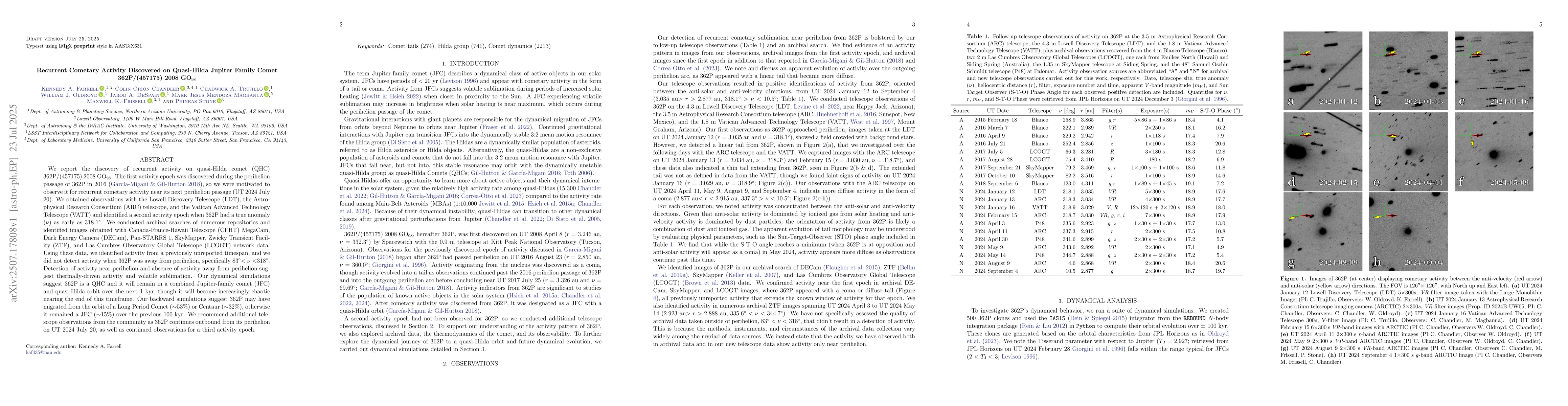 We report the discovery of recurrent activity on quasi-Hilda comet (QHC) 362P/(457175) 2008 GO98. The first activity epoch was discovered during the perihelion passage of 362P. The first activity epoch was discovered during the perihelion in 2016 (Garcia-Migani & Gil-Hutton 2018), so we were motivated to observe it for recurrent cometary activity near its next perihelion passage (UT 2024 July 20). We obtained observations with the Lowell Discovery Telescope (LDT), the Astrophysical Research Consortium (ARC) telescope, and the Vatican Advanced Technology Telescope (VATT) and identified a second activity epoch when 362P had a true anomaly (v) as early as 318.1 deg. We conducted archival searches of numerous repositories and identified images obtained with Canada-France-Hawaii Telescope (CFHT) MegaCam, Dark Energy Camera (DECam), Pan-STARRS 1, SkyMapper, Zwicky Transient Facility (ZTF), and Las Cumbres Observatory Global Telescope (LCOGT) network data. Using these data, we identified activity from a previously unreported timespan, and we did not detect activity when 362P was away from perihelion, specifically 83 deg < v < 318 deg. Detection of activity near perihelion and absence of activity away from perihelion suggest thermally-driven activity and volatile sublimation. Our dynamical simulations suggest 362P is a QHC and it will remain in a combined Jupiter-family comet (JFC) and quasi-Hilda orbit over the next 1 kyr, though it will become increasingly chaotic nearing the end of this timeframe. Our backward simulations suggest 362P may have migrated from the orbit of a Long Period Comet (~53%) or Centaur (~32%), otherwise it remained a JFC (~15%) over the previous 100 kyr. We recommend additional telescope observations from the community as 362P continues outbound from its perihelion on UT 2024 July 20, as well as continued observations for a third activity epoch.