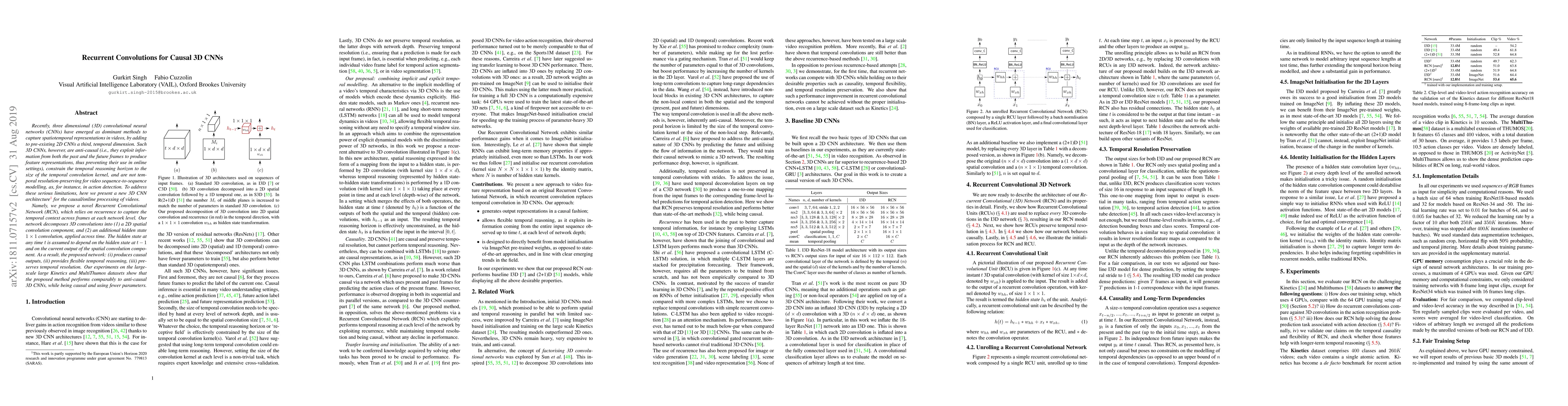 Researchers introduce a new causal 3D CNN architecture called Recurrent Convolutional Network (RCN) that addresses limitations of anti-causal 3D CNNs, achieving comparable performance on action detection tasks while using fewer parameters.