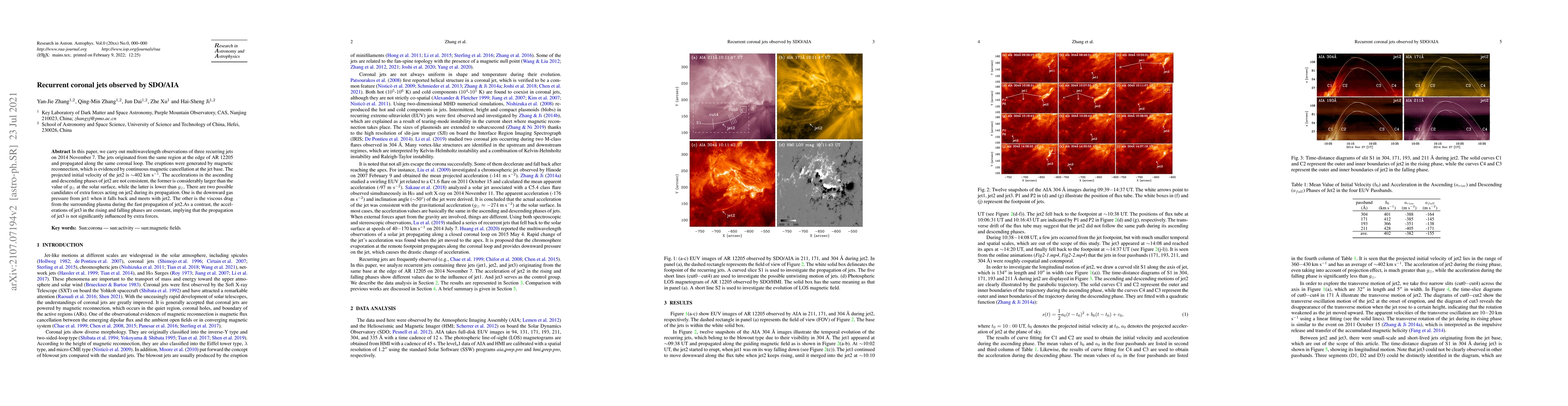 Recurring coronal jets were observed using SDO/AIA, revealing one jet with inconsistent accelerations possibly due to extra forces like gas pressure or viscous drag, while another showed constant acceleration.