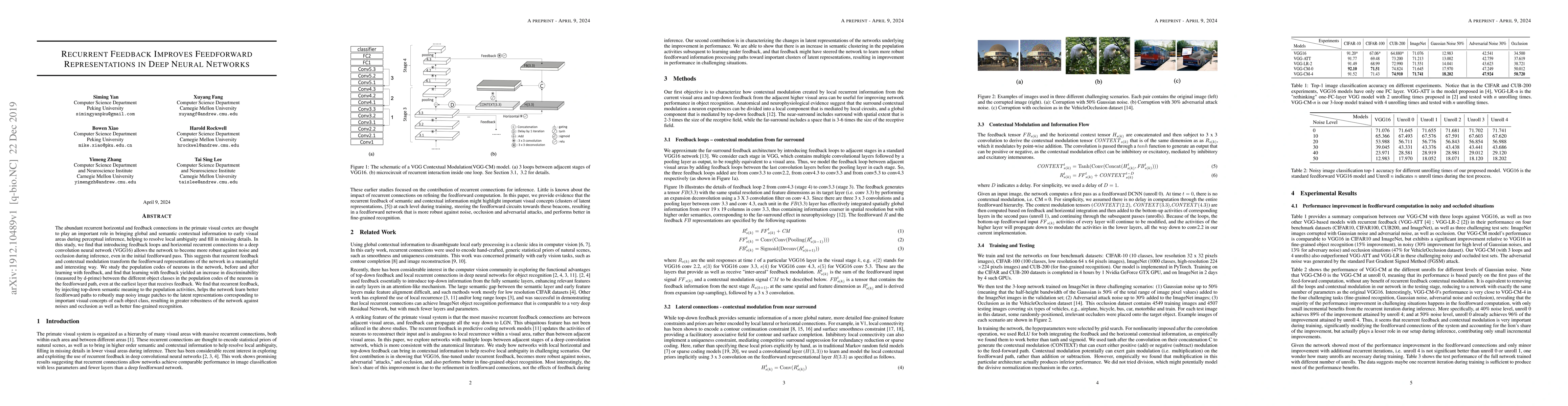 The abundant recurrent horizontal and feedback connections in the primate visual cortex are thought to play an important role in bringing global and semantic contextual information to early visual areas during perceptual inference, helping to resolve local ambiguity and fill in missing details. In this study, we find that introducing feedback loops and horizontal recurrent connections to a deep convolution neural network (VGG16) allows the network to become more robust against noise and occlusion during inference, even in the initial feedforward pass. This suggests that recurrent feedback and contextual modulation transform the feedforward representations of the network in a meaningful and interesting way. We study the population codes of neurons in the network, before and after learning with feedback, and find that learning with feedback yielded an increase in discriminability (measured by d-prime) between the different object classes in the population codes of the neurons in the feedforward path, even at the earliest layer that receives feedback. We find that recurrent feedback, by injecting top-down semantic meaning to the population activities, helps the network learn better feedforward paths to robustly map noisy image patches to the latent representations corresponding to important visual concepts of each object class, resulting in greater robustness of the network against noises and occlusion as well as better fine-grained recognition.