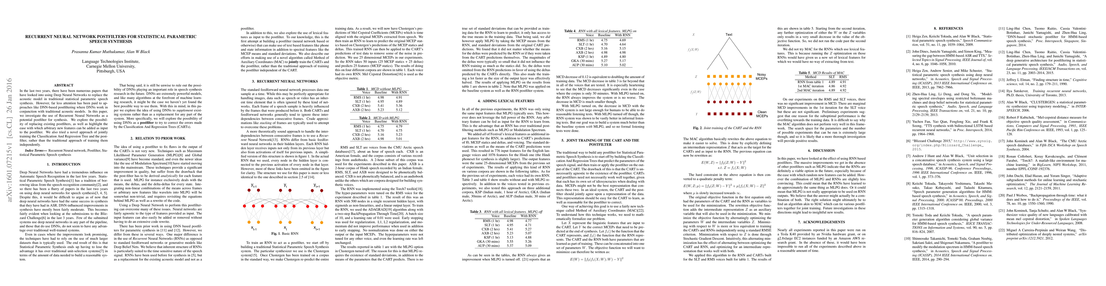 This paper explores using Recurrent Neural Networks (RNNs) as postfilters in statistical parametric speech synthesis, examining their potential to replace existing postfilters and the flexibility of incorporating new features. It also investigates a novel joint training method for the Classification And Regression Tree and the postfilter, contrasting it with traditional independent training.