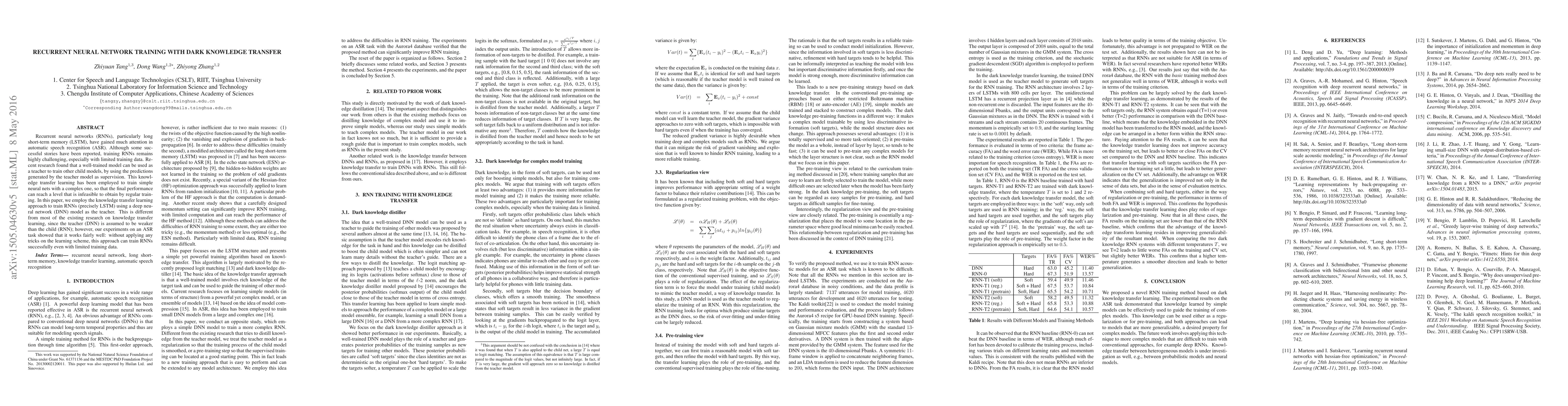 This paper explores training LSTMs using knowledge transfer from a weaker DNN model, demonstrating that the DNN can effectively serve as a teacher to improve RNN performance, even with limited training data, achieving competitive results in an automatic speech recognition task.