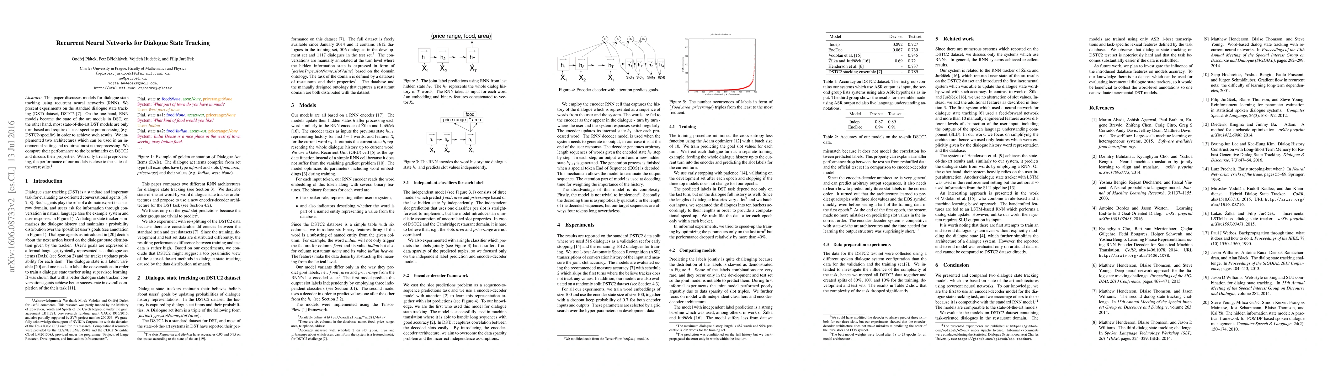 This paper proposes two recurrent neural network architectures for dialogue state tracking that require minimal preprocessing, achieving performance close to state-of-the-art benchmarks on the DSTC2 dataset while being usable in incremental settings.