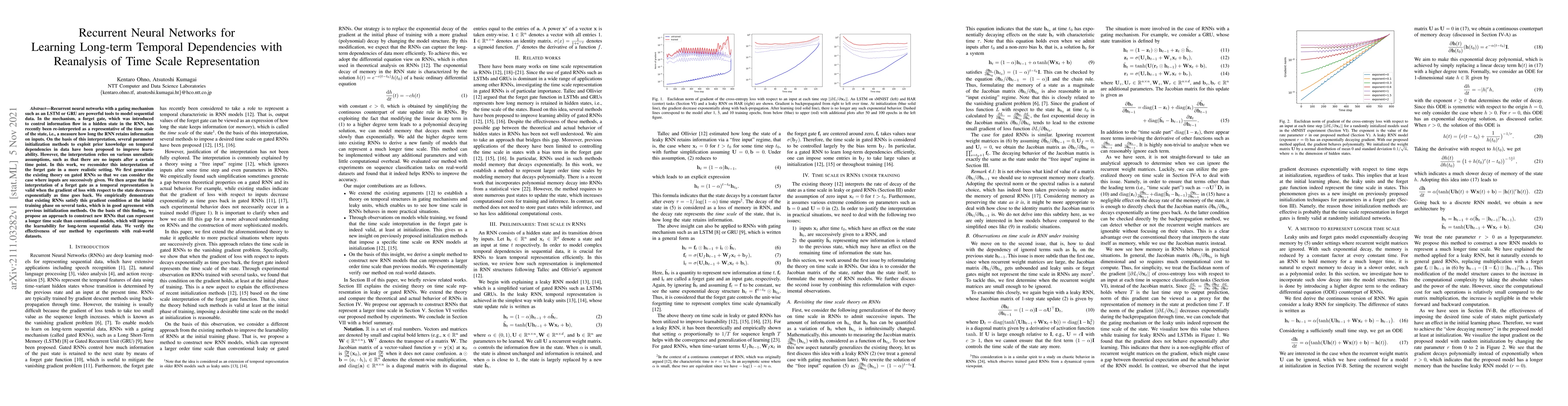 Researchers reinterpreted the forget gate in Recurrent Neural Networks to better represent long-term temporal dependencies, finding that existing models satisfy a key condition at training phase, leading to improved learnability for long-term sequential data.