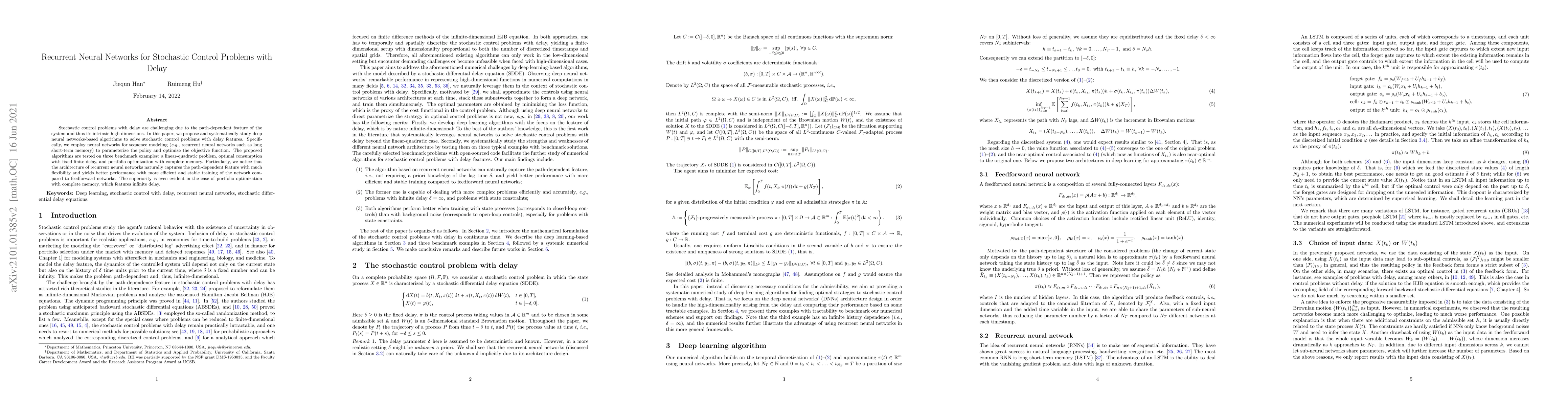 This paper proposes deep neural network-based algorithms, specifically recurrent neural networks, to solve stochastic control problems with delay. The recurrent architecture effectively captures path-dependent features, demonstrating superior performance and stability compared to feedforward networks, as shown through benchmark examples.