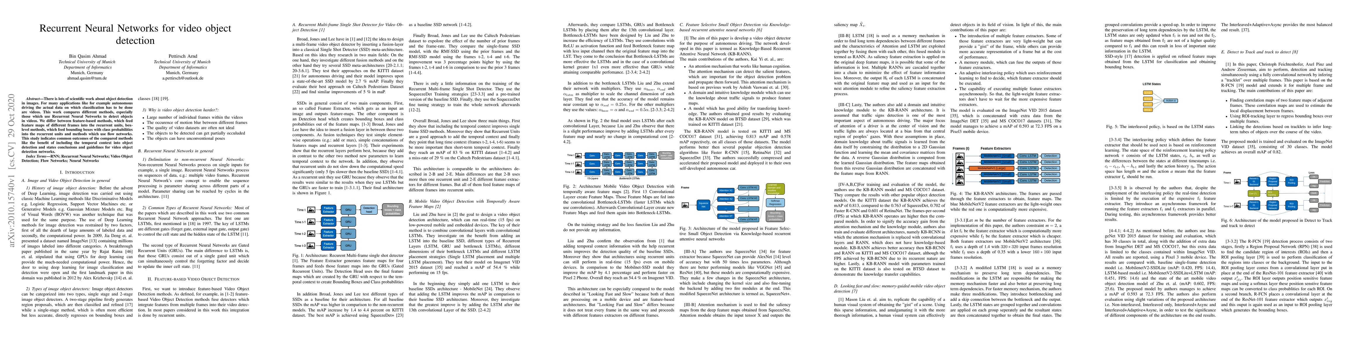 This study compares various Recurrent Neural Network (RNN) methods for video object detection, highlighting the advantages of incorporating temporal context and concluding with guidelines for effective video object detection networks.