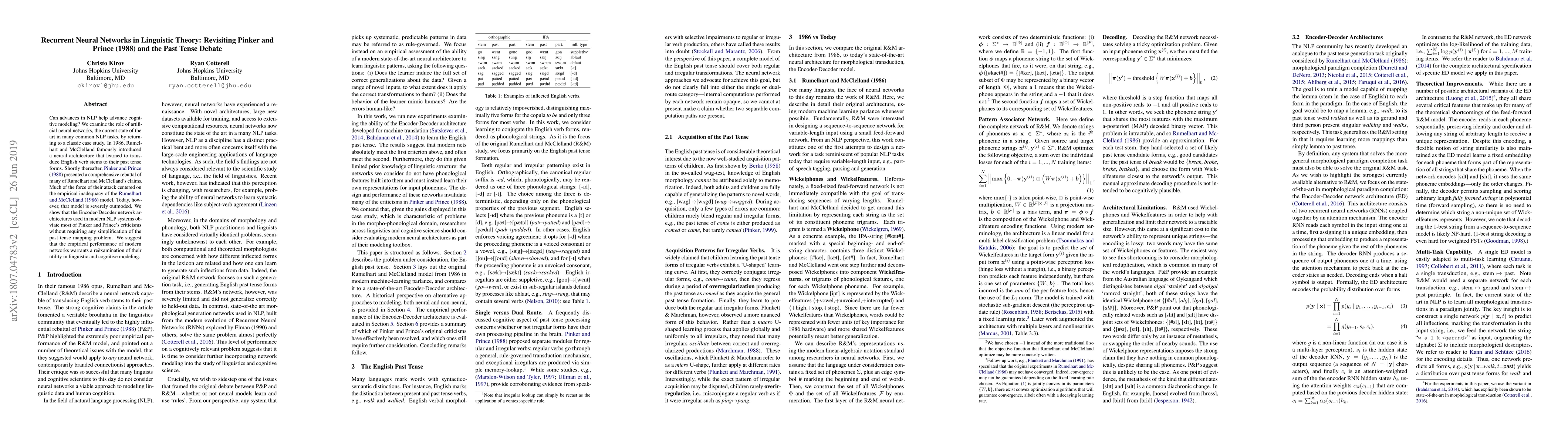 A recent study revisits Pinker & Prince's 1988 critique of Rumelhart & McClelland's neural model for past tense formation, showing that modern Encoder-Decoder networks can address the issues without simplification.