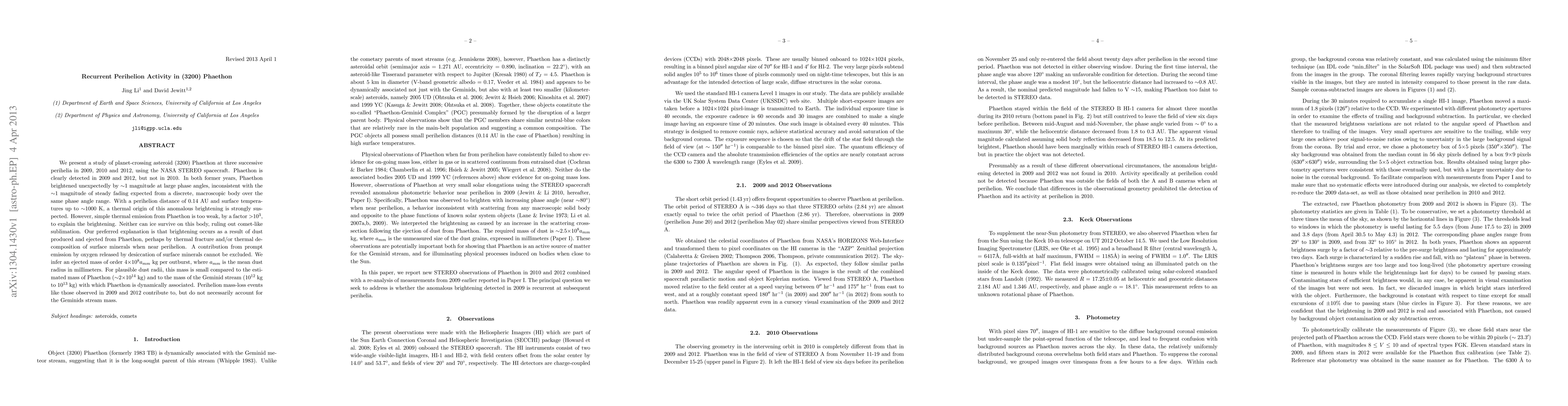 The study of asteroid (3200) Phaethon revealed unexpected brightening at perihelion, suggesting a thermal origin due to dust production from surface minerals or fractures.