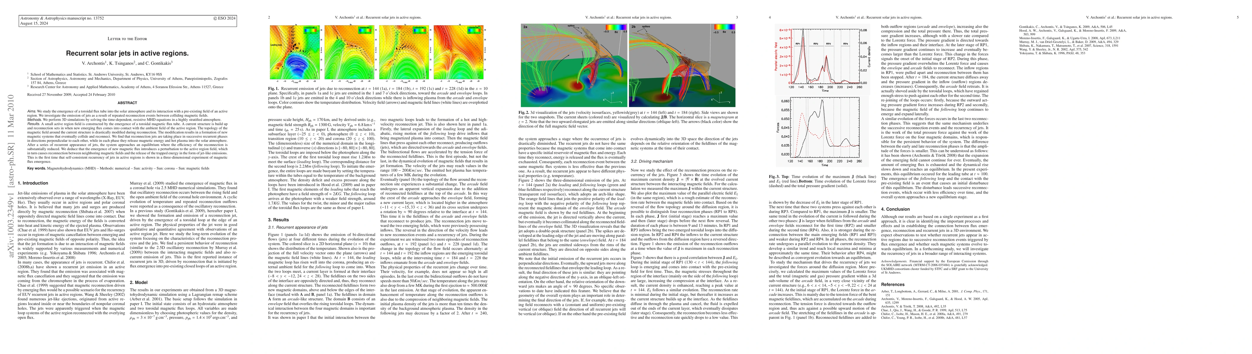 Researchers found that recurrent solar jets in active regions occur due to repeated reconnection events between colliding magnetic fields, releasing magnetic energy and hot plasma into the solar atmosphere.