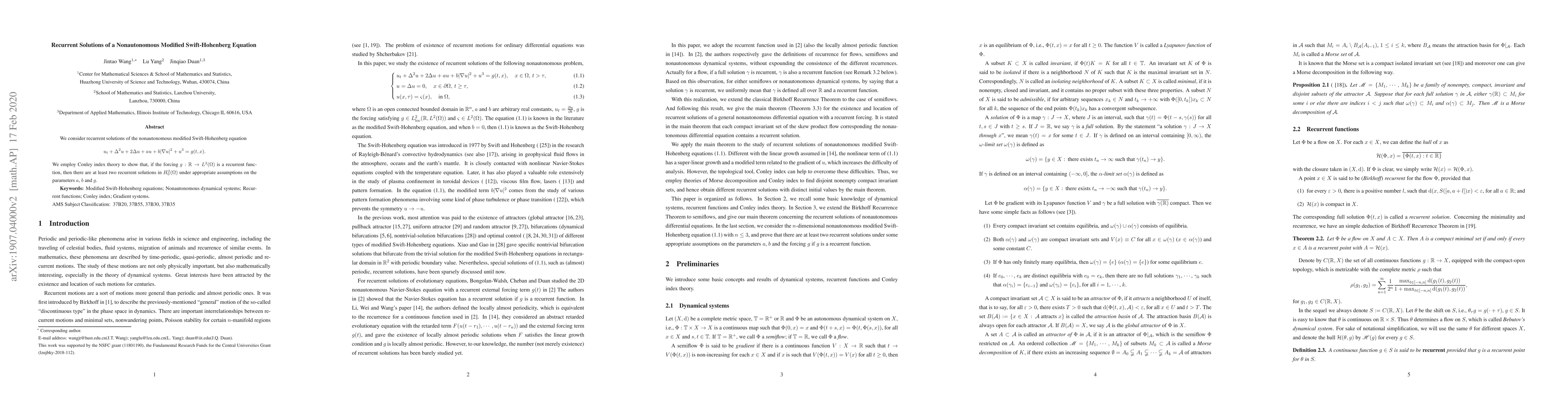 This paper investigates recurrent solutions of a nonautonomous modified Swift-Hohenberg equation, demonstrating that under certain conditions, the presence of recurrent forcing leads to at least two recurrent solutions in the function space $H_0^2(\Omega)$, using Conley index theory.