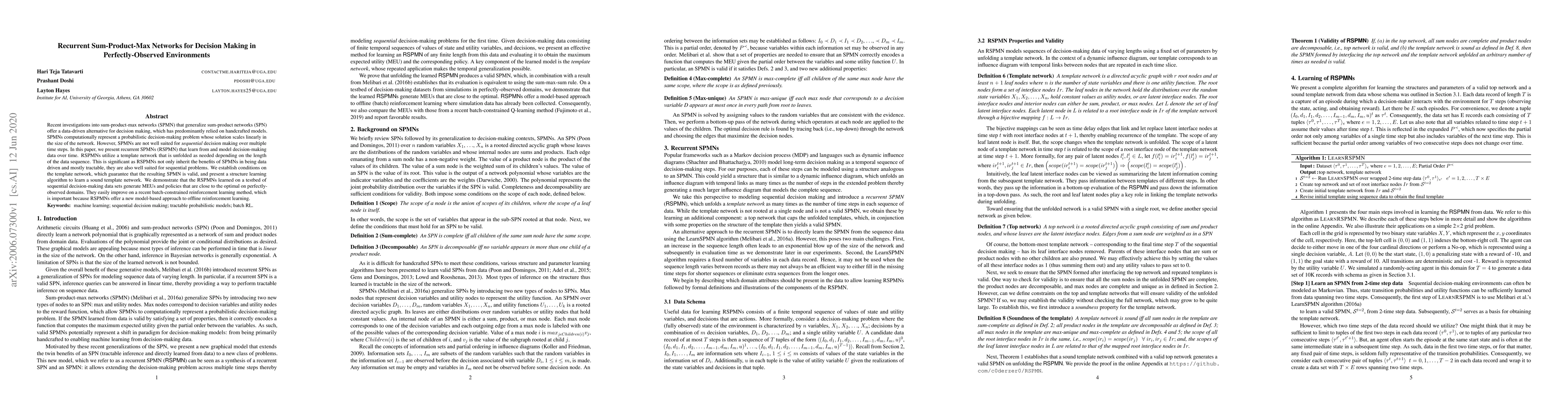 Researchers developed Recurrent Sum-Product-Max Networks to improve decision-making in sequential environments, offering a data-driven alternative to traditional models and achieving performance comparable to batch-constrained reinforcement learning methods.