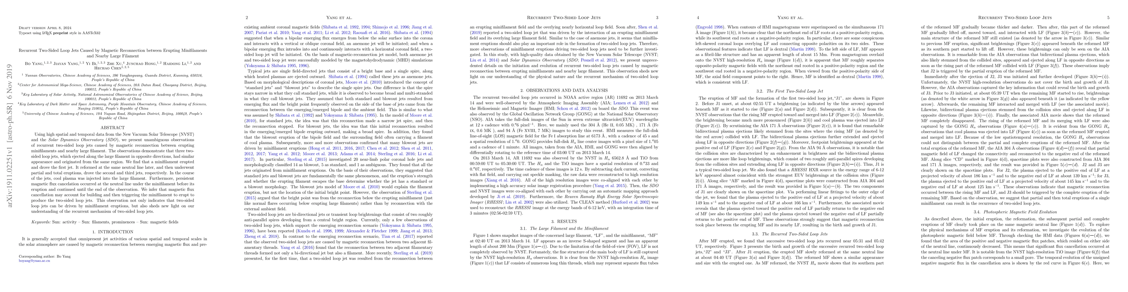 This study observes recurrent two-sided loop jets driven by the magnetic reconnection between erupting minifilaments and a nearby large filament using data from NVST and SDO. The findings suggest that minifilament eruptions trigger these jets, with persistent magnetic flux cancellation likely initiating the eruptions.