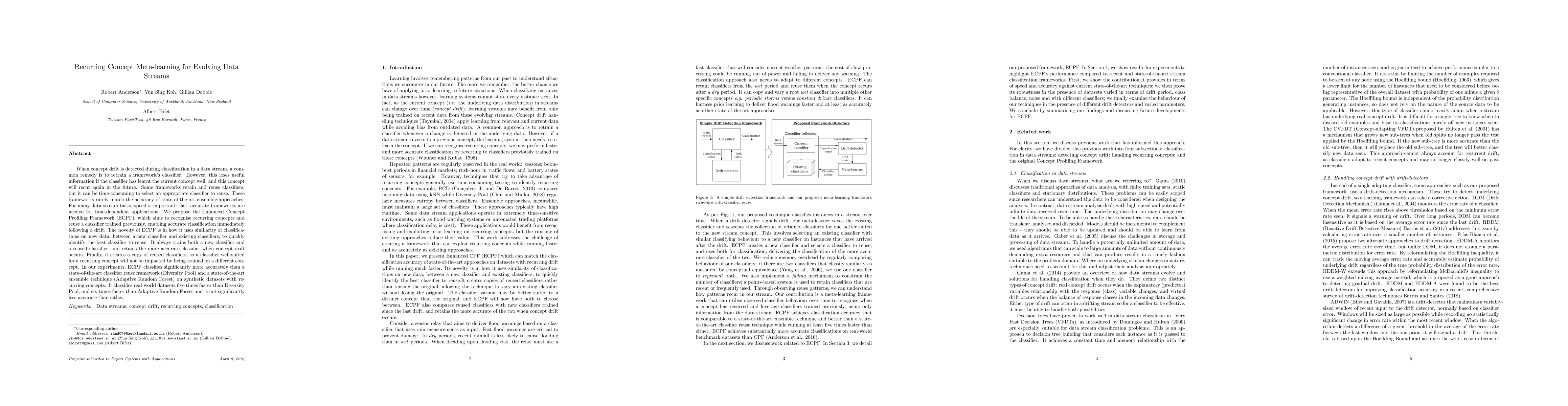 When concept drift is detected during classification in a data stream, a common remedy is to retrain a framework's classifier. However, this loses useful information if the classifier has learnt the current concept well, and this concept will recur again in the future. Some frameworks retain and reuse classifiers, but it can be time-consuming to select an appropriate classifier to reuse. These frameworks rarely match the accuracy of state-of-the-art ensemble approaches. For many data stream tasks, speed is important: fast, accurate frameworks are needed for time-dependent applications. We propose the Enhanced Concept Profiling Framework (ECPF), which aims to recognise recurring concepts and reuse a classifier trained previously, enabling accurate classification immediately following a drift. The novelty of ECPF is in how it uses similarity of classifications on new data, between a new classifier and existing classifiers, to quickly identify the best classifier to reuse. It always trains both a new classifier and a reused classifier, and retains the more accurate classifier when concept drift occurs. Finally, it creates a copy of reused classifiers, so a classifier well-suited for a recurring concept will not be impacted by being trained on a different concept. In our experiments, ECPF classifies significantly more accurately than a state-of-the-art classifier reuse framework (Diversity Pool) and a state-of-the-art ensemble technique (Adaptive Random Forest) on synthetic datasets with recurring concepts. It classifies real-world datasets five times faster than Diversity Pool, and six times faster than Adaptive Random Forest and is not significantly less accurate than either.