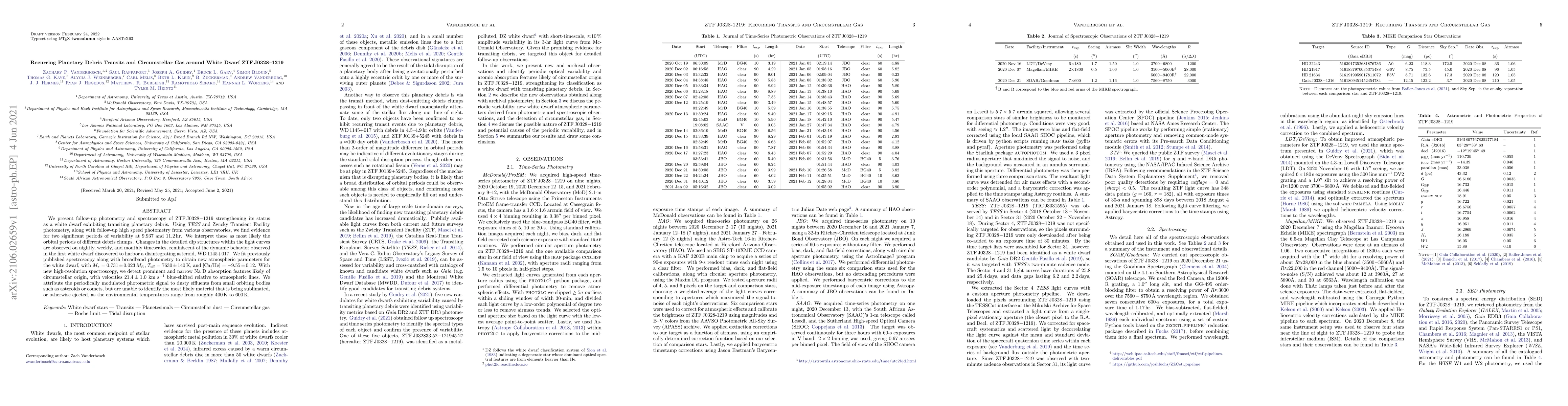 This paper investigates the white dwarf ZTF J0328$-$1219, revealing recurring transits of planetary debris with orbital periods of 9.937 and 11.2 hours. The study identifies circumstellar gas around the white dwarf, evidenced by blue-shifted Na D absorption features, and suggests the variability is due to orbiting debris.