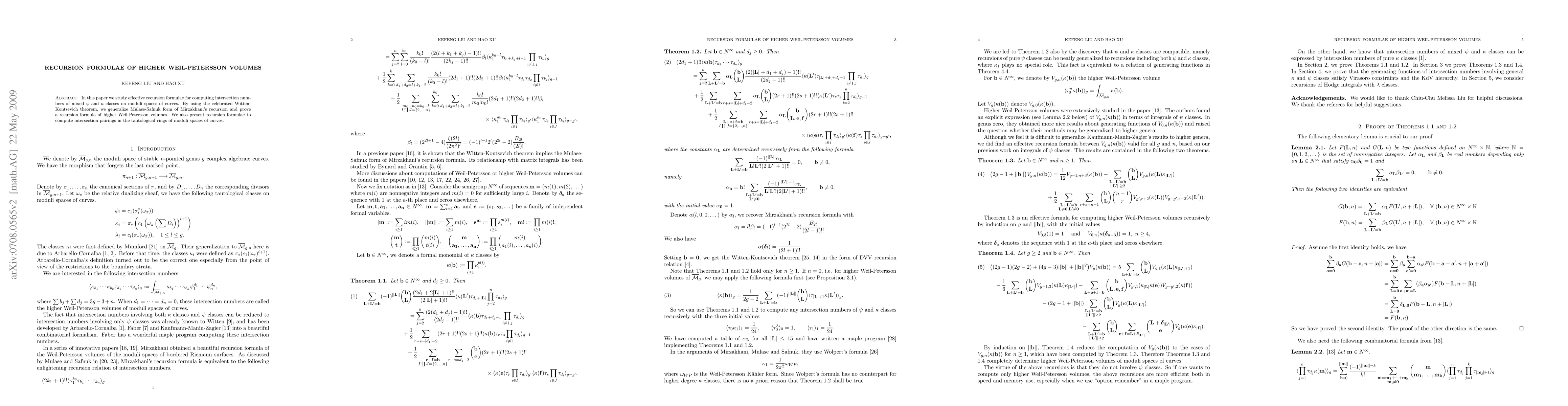 This paper develops recursion formulae for calculating intersection numbers of mixed $\psi$ and $\kappa$ classes on moduli spaces of curves, leveraging the Witten-Kontsevich theorem to generalize Mirzakhani's recursion and determine higher Weil-Petersson volumes. It also introduces methods for computing intersection pairings in the tautological rings of these moduli spaces.