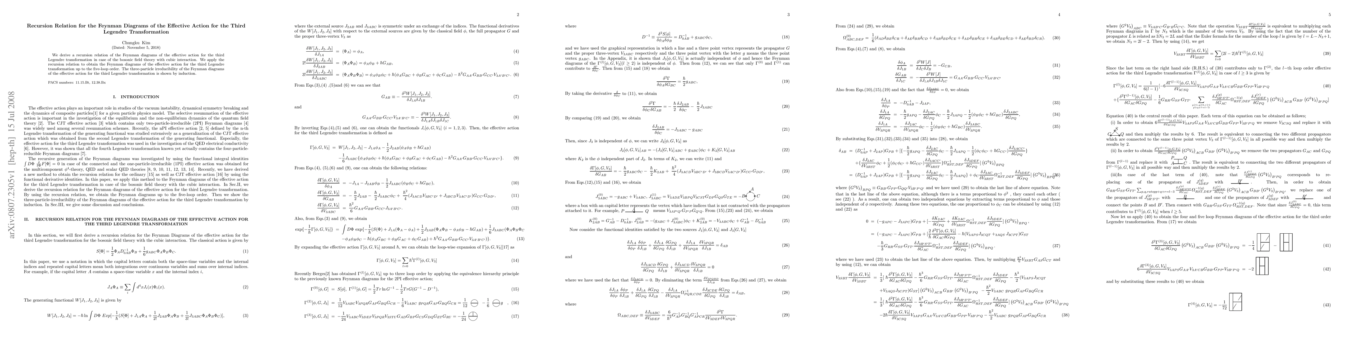 We derive a recursion relation of the Feynman diagrams of the effective action for the third Legendre transformation in case of the bosonic field theory with cubic interaction. We apply the recursion relation to obtain the Feynman diagrams of the effective action for the third Legendre transformation up to the five-loop order. The three-particle irreducibility of the Feynman diagrams of the effective action for the third Legendre transformation is shown by induction.