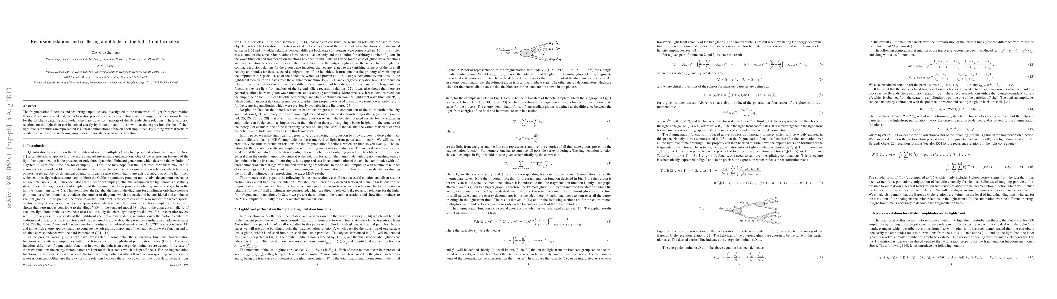 This paper explores fragmentation functions and scattering amplitudes using light-front perturbation theory, revealing that factorization leads to recursion relations analogous to the Berends-Giele relations. These relations allow for exact solutions, expressing off-shell amplitudes as linear combinations of on-shell amplitudes, thus recovering known scattering amplitudes.