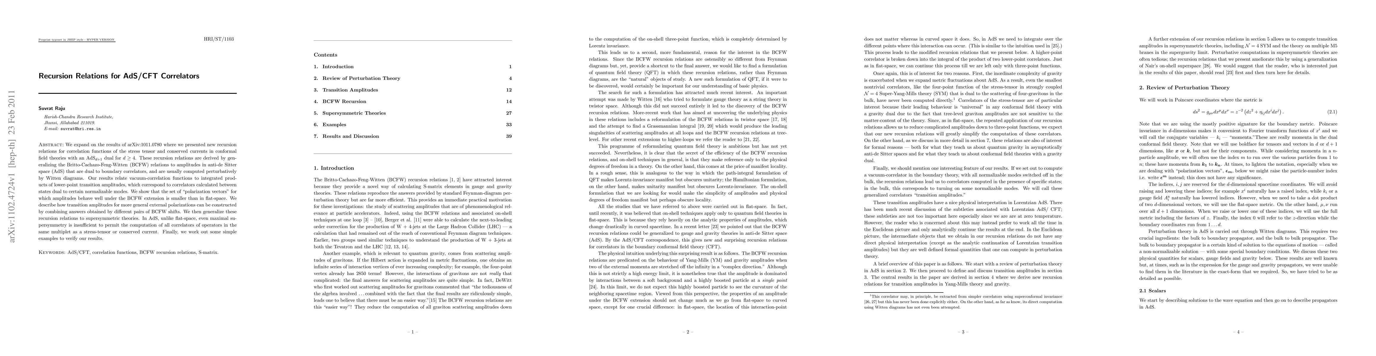 This paper extends previous results by introducing recursion relations for AdS/CFT correlators derived from the BCFW formalism in anti-de Sitter space, showing that fewer polarization vectors apply well compared to flat space and presenting methods for computing amplitudes for general polarizations. The study also covers the limitations of maximal supersymmetry in AdS correlator computations.