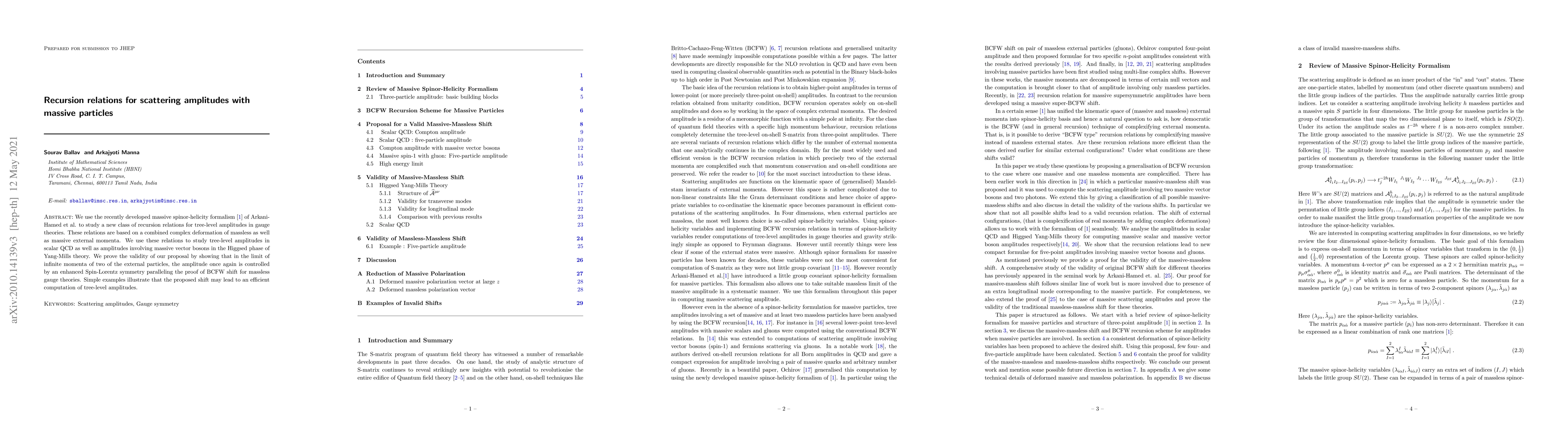 This paper proposes new recursion relations for tree-level scattering amplitudes in gauge theories using the massive spinor-helicity formalism, demonstrating their application in scalar QCD and massive vector bosons. The relations are validated by showing enhanced Spin-Lorentz symmetry, akin to the BCFW shift, and illustrated to potentially simplify amplitude computations.