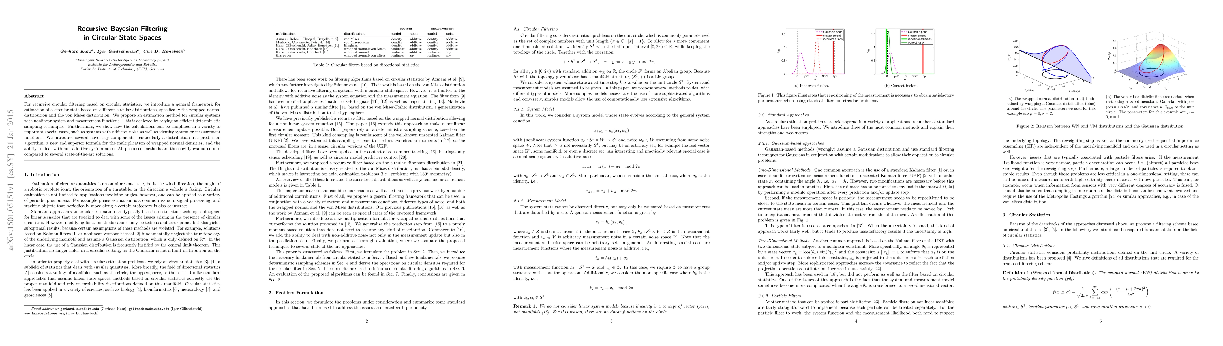 For recursive circular filtering based on circular statistics, we introduce a general framework for estimation of a circular state based on different circular distributions, specifically the wrapped normal distribution and the von Mises distribution. We propose an estimation method for circular systems with nonlinear system and measurement functions. This is achieved by relying on efficient deterministic sampling techniques. Furthermore, we show how the calculations can be simplified in a variety of important special cases, such as systems with additive noise as well as identity system or measurement functions. We introduce several novel key components, particularly a distribution-free prediction algorithm, a new and superior formula for the multiplication of wrapped normal densities, and the ability to deal with non-additive system noise. All proposed methods are thoroughly evaluated and compared to several state-of-the-art solutions.