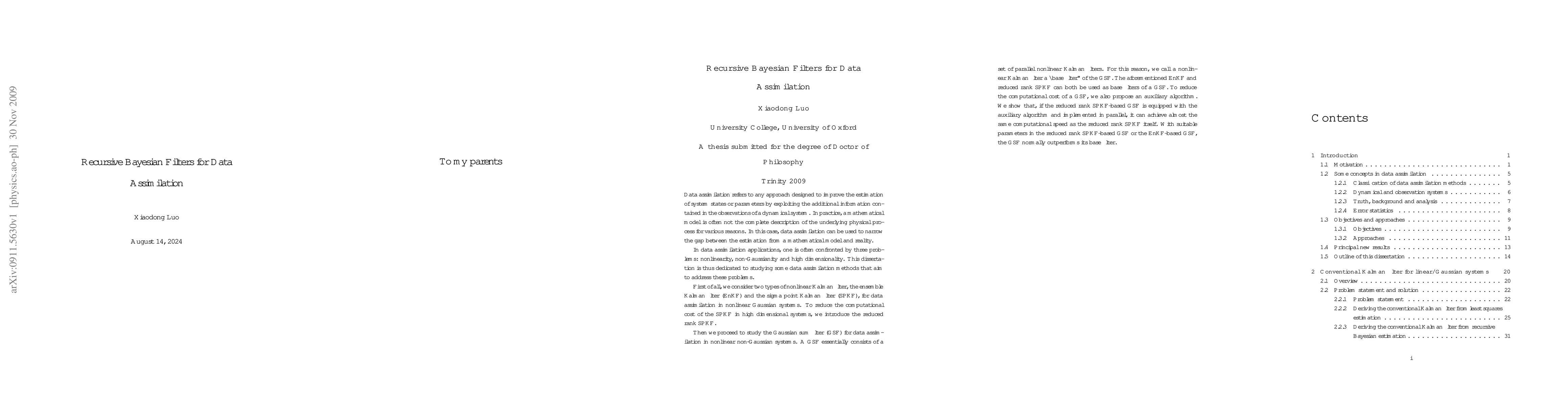 Summary: This paper explores recursive Bayesian filters as a method for data assimilation, focusing on their ability to efficiently update and refine estimates based on incoming data streams. The study highlights the practical applications and advantages of these filters in real-time data processing and analysis.