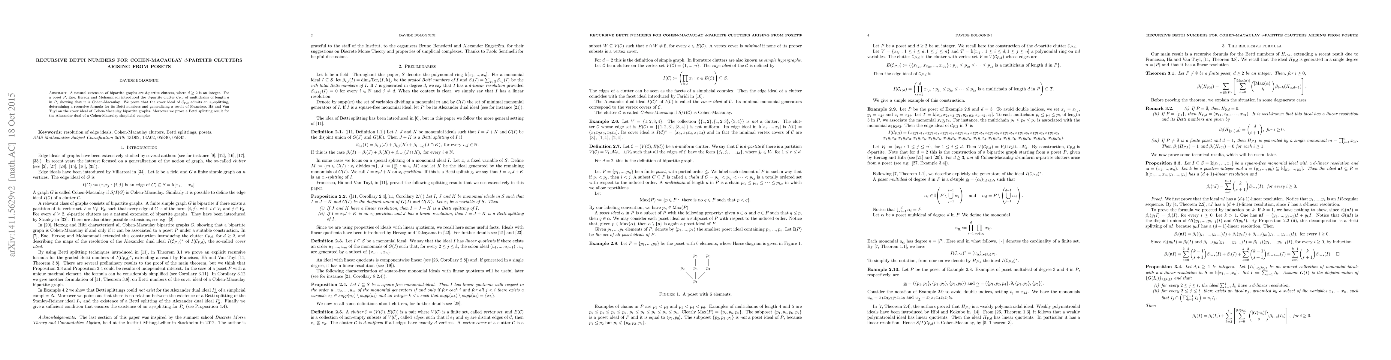 This paper proves a recursive formula for the Betti numbers of the cover ideal of Cohen-Macaulay $d$-partite clutters derived from posets, extending previous results for bipartite graphs. It also establishes a Betti splitting result for the Alexander dual of Cohen-Macaulay simplicial complexes.