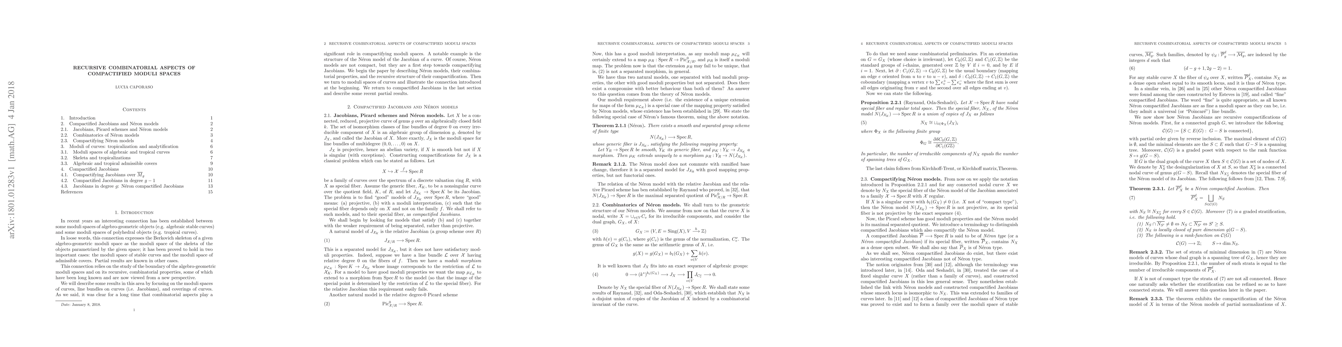 A connection between moduli spaces of algebro-geometric objects and moduli spaces of polyhedral objects has been under investigation in recent years. Loosely speaking, the skeleton of an algebro-geometric moduli space is expressed as the modul space of the skeleta of the objects it parametrizes. The connection is based on the combinatorial properties of the boundary of the algebro-geometric moduli spaces. This paper overviews this topic with focus on moduli of curves, admissible covers, Jacobians and their Neron models.